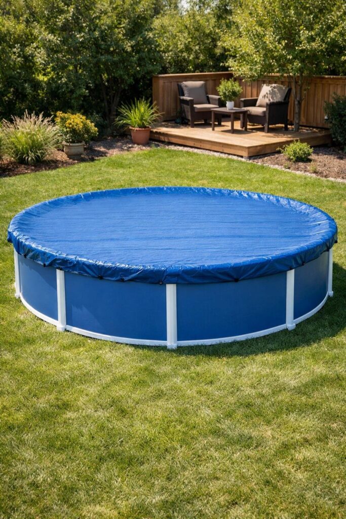 A basic cover keeps leaves and dirt out so you clean less. You can buy a solar or mesh cover that fits your pool shape and budget.
