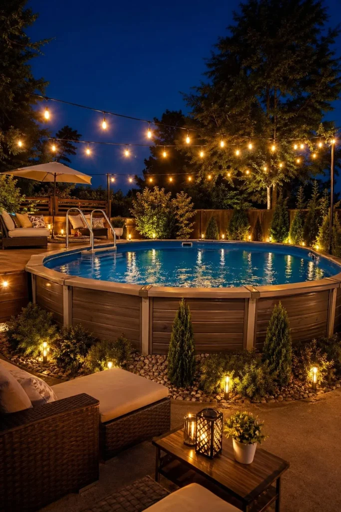 • 10. Above Ground Pool with Evening String Lights