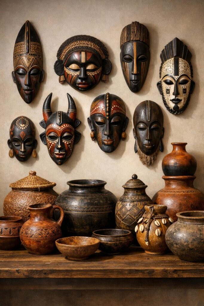 This article shows ways to mix sizes, regions, and materials so your gallery feels balanced and vibrant. You’ll find simple styling ideas that help you arrange masks with textiles, woven baskets, lighting, and other African art to create a polished, meaningful display.
