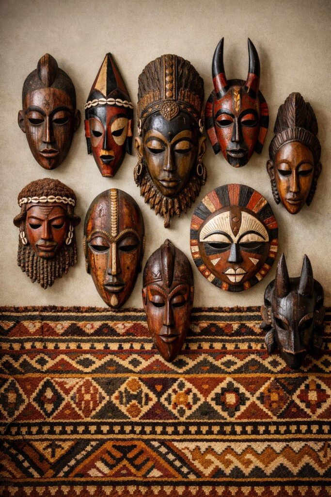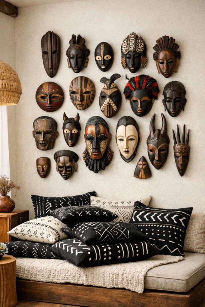 You can bring bold culture and texture into your home by creating an African mask gallery wall that reflects your taste and tells a story. A well-planned display turns masks, baskets, textiles, and pottery into a cohesive, eye-catching focal point that adds warmth and personality to any room.