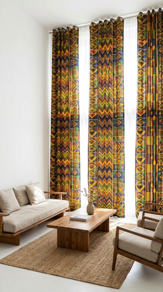 11. Integrate vibrant kente cloth upholstery