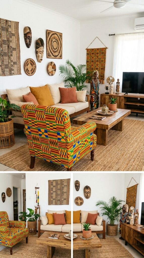 - 11. Integrate vibrant kente cloth upholstery