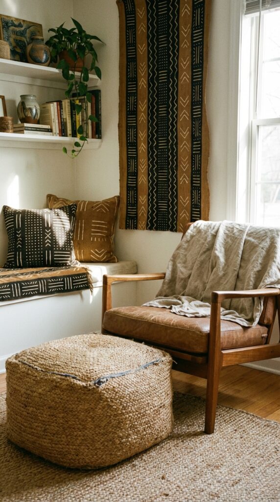 - 1. Incorporate mud cloth throw pillows for texture and pattern