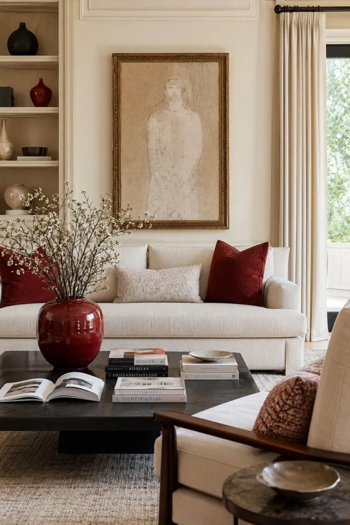 14. Keep it Simple with a Neutral Palette and Red Accents