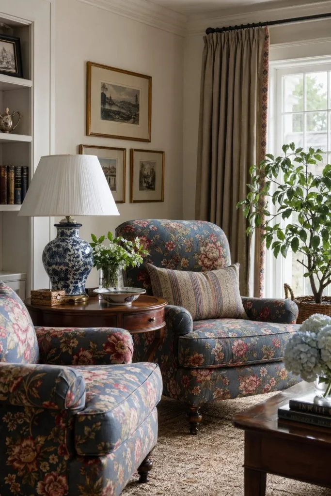 15. Create a Grandmillennial Sitting Room with Floral Armchairs