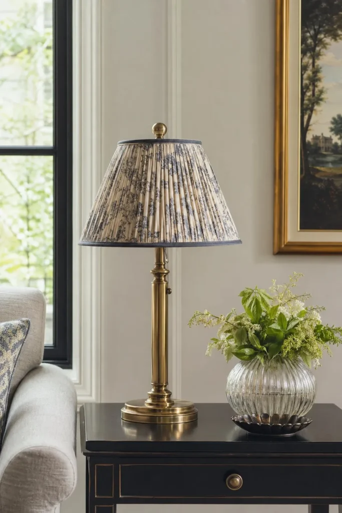 Swapping out a basic white drum shade for a pleated or patterned fabric shade completely changes the mood of a room. Hunt for vintage brass lamps topped with ticking stripe or block-printed shades at your local antique mall. The soft, filtered light they produce makes your living room incredibly inviting during the evening.