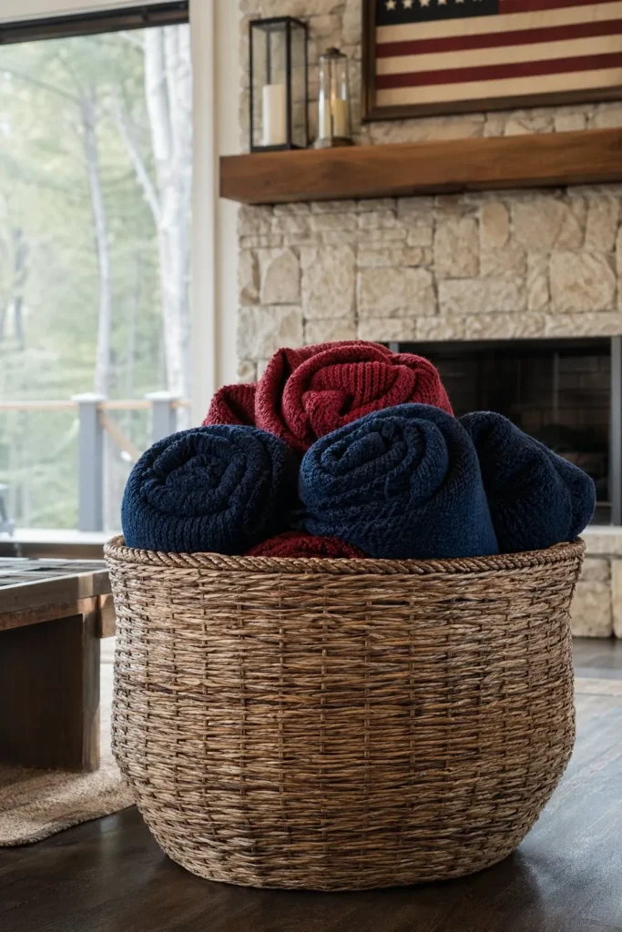 17. Use Woven Baskets to Store Extra Red and Blue Blankets