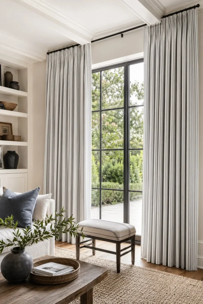Window treatments make or break the coziness of a room. Opt for floor-length, pinch-pleat curtains in a subtle blue ticking stripe or small-scale floral to frame your windows beautifully. This tailoring detail softens the hard architectural edges of the room while filtering harsh afternoon sunlight.