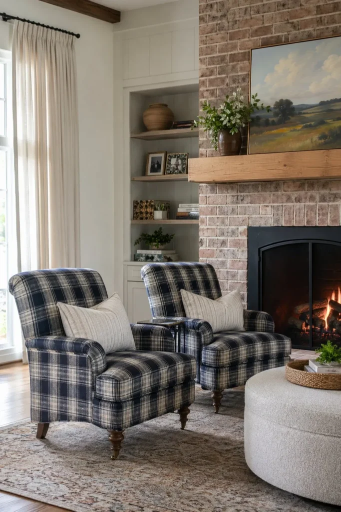 2. Style a Cozy Southern Living Room with Plaid Armchairs