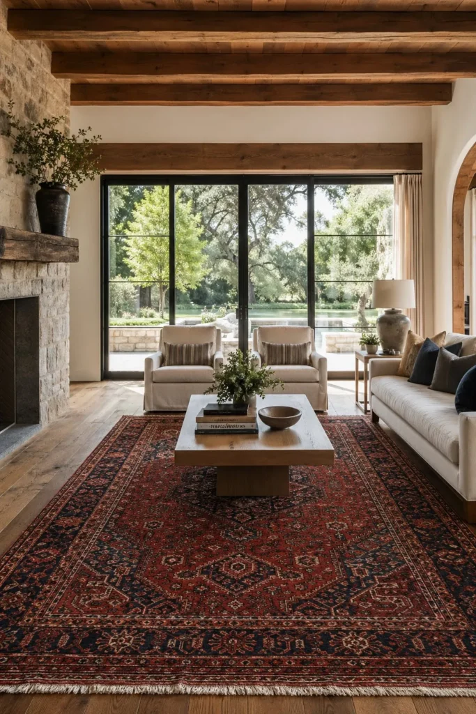 4. Anchor the Room with a Traditional Red Persian Rug