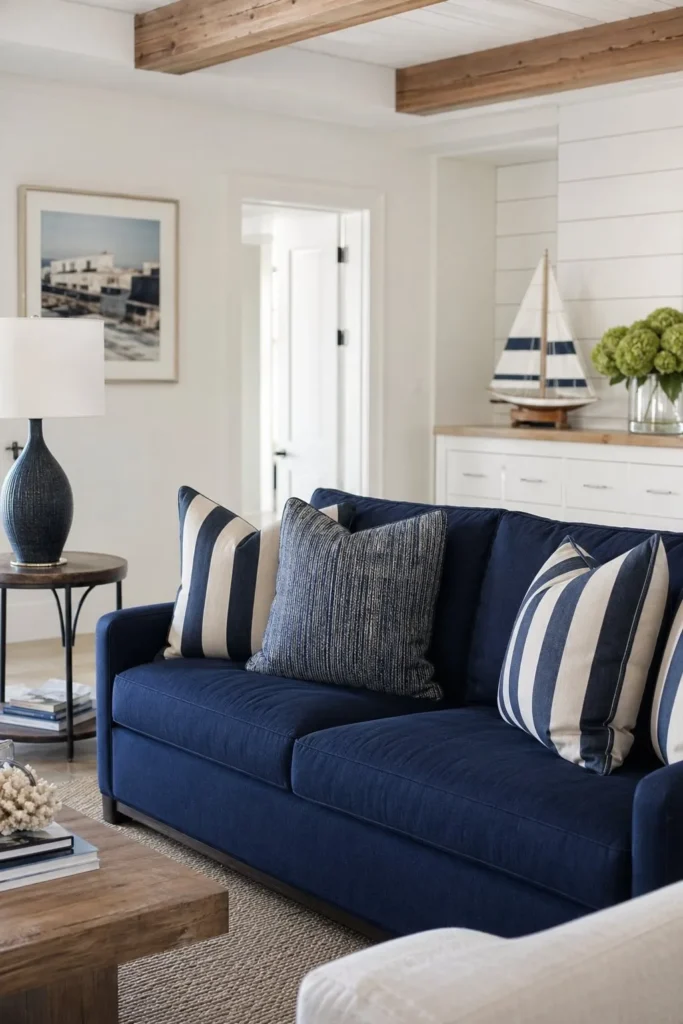 - 9. Choose a Navy Blue Sofa for a Coastal Americana Vibe