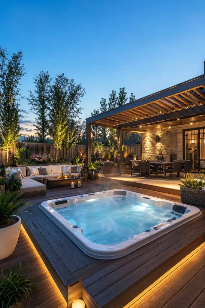 16. Aesthetic Patio Setup with a Built-In Jacuzzi