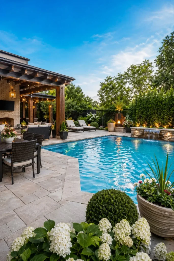 When you are narrowing down your favorite backyard pool and patio ideas, pay close attention to layout first, then materials and furniture. Save the patio layouts you love most to your Pinterest boards so you can compare the flow, the finishes, and the zones before you start your project.