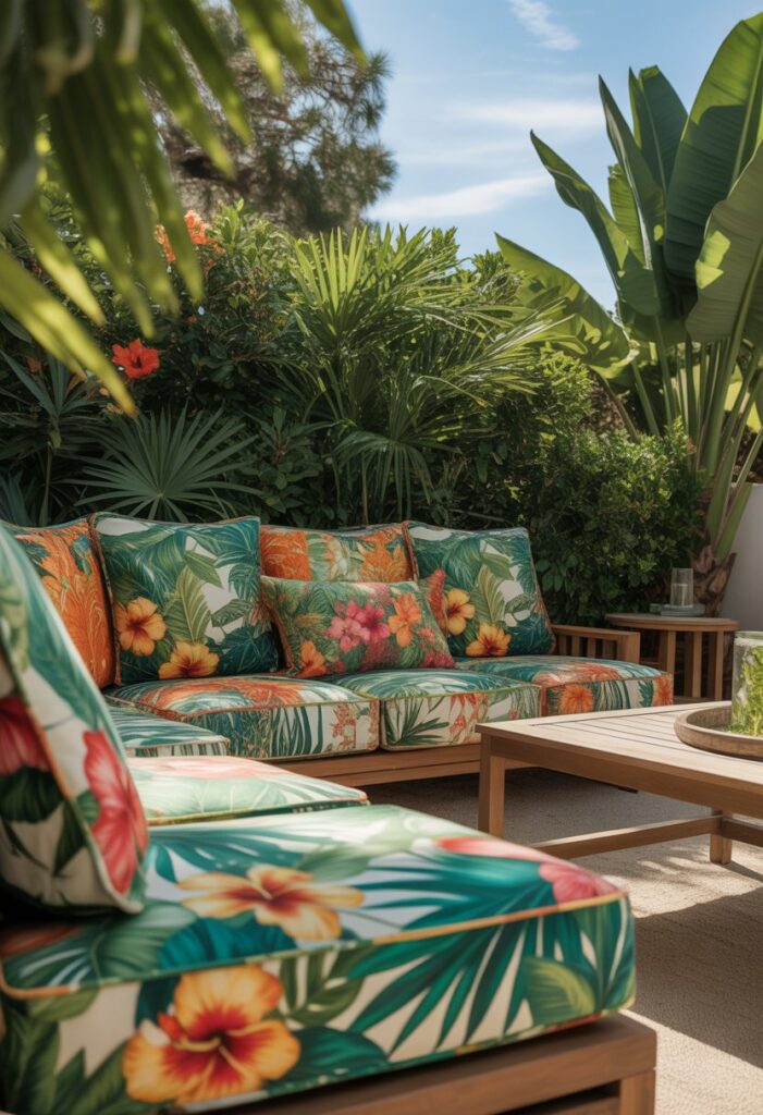 12. Use outdoor tropical prints for pillows and cushions