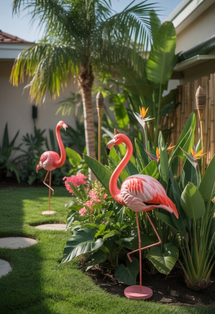 8. Use flamingo lawn ornaments for playful tropical touches