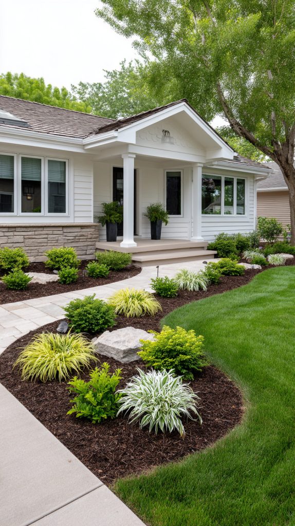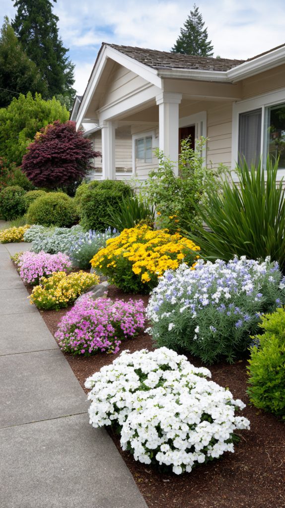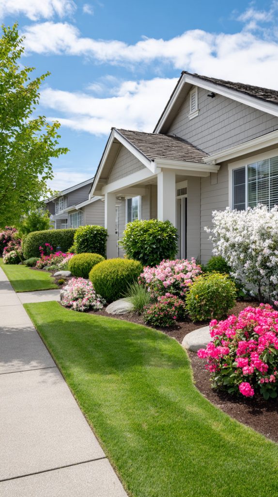 These plants help hide the foundation and make your home blend nicely with your yard. Pick low-maintenance varieties to keep things easy and neat.