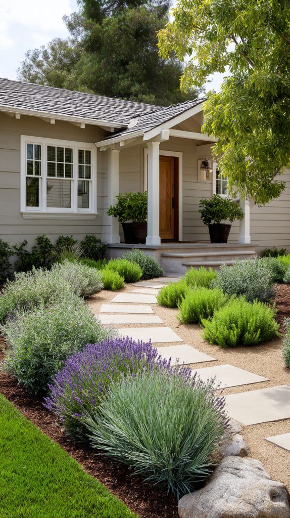 You can add fragrant herbs like lavender, mint, or rosemary near your entry paths. These plants give off nice smells when you walk by.