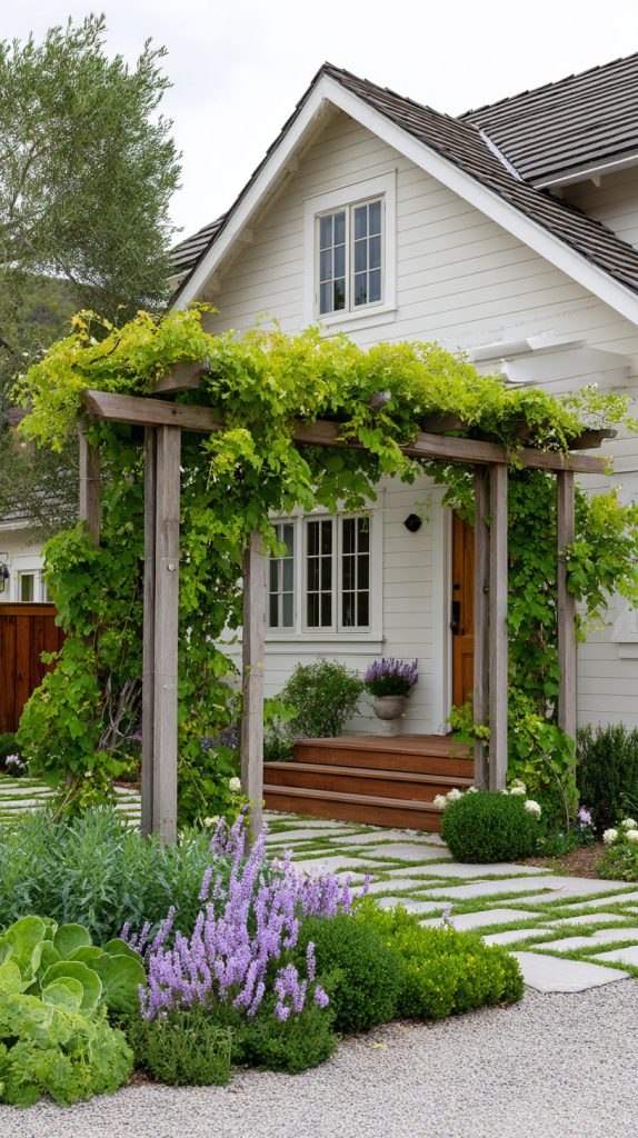 You can use climbing vines on trellises to add height and color to your front yard. They create a natural screen and make any space feel cozier.