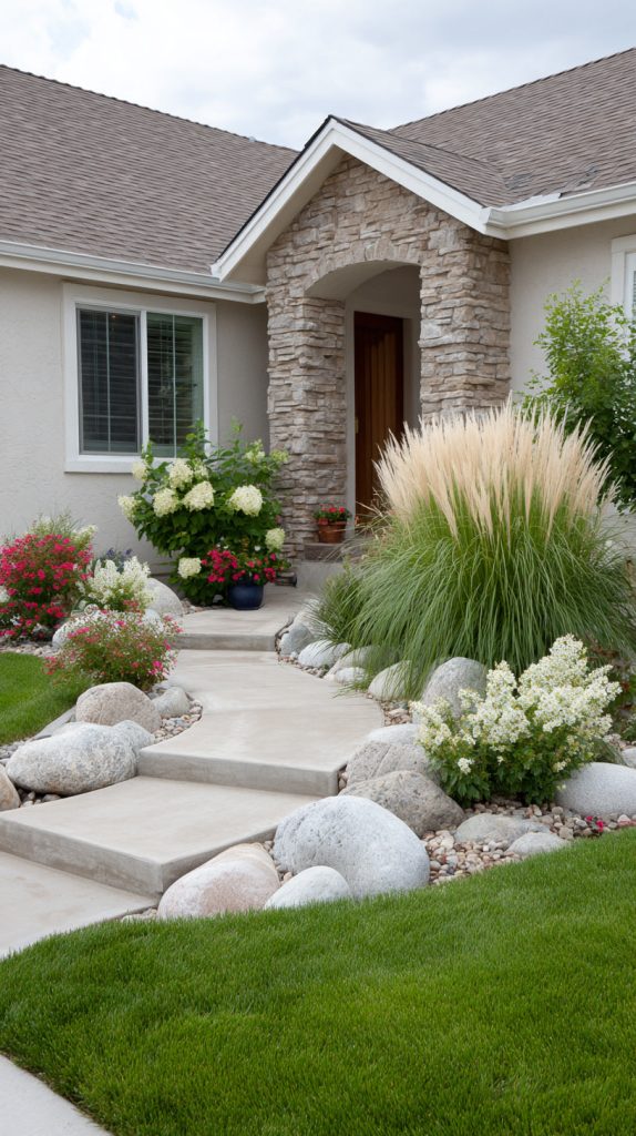 Ornamental grasses add texture and depth to your front yard. They move gently in the breeze, creating a calm and natural feel.