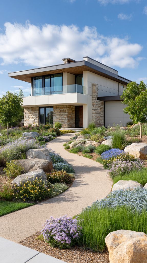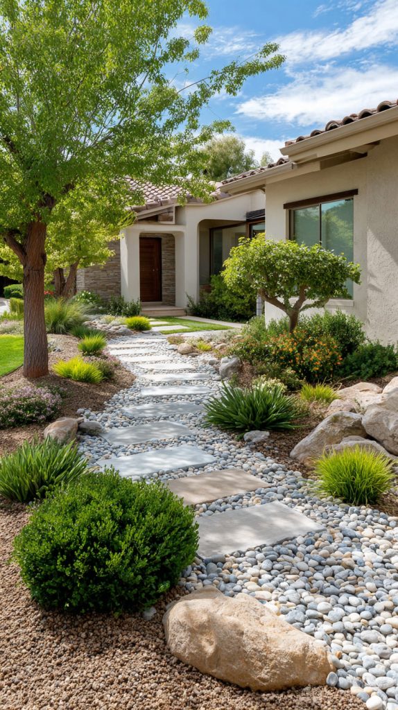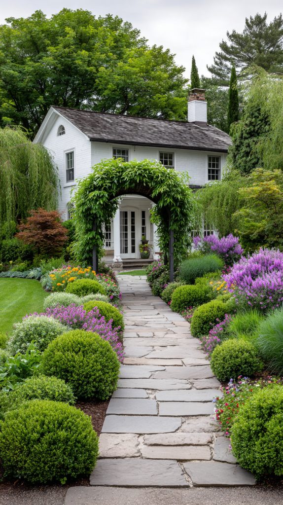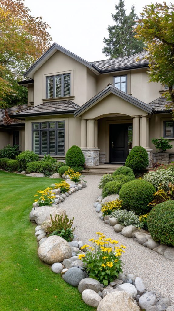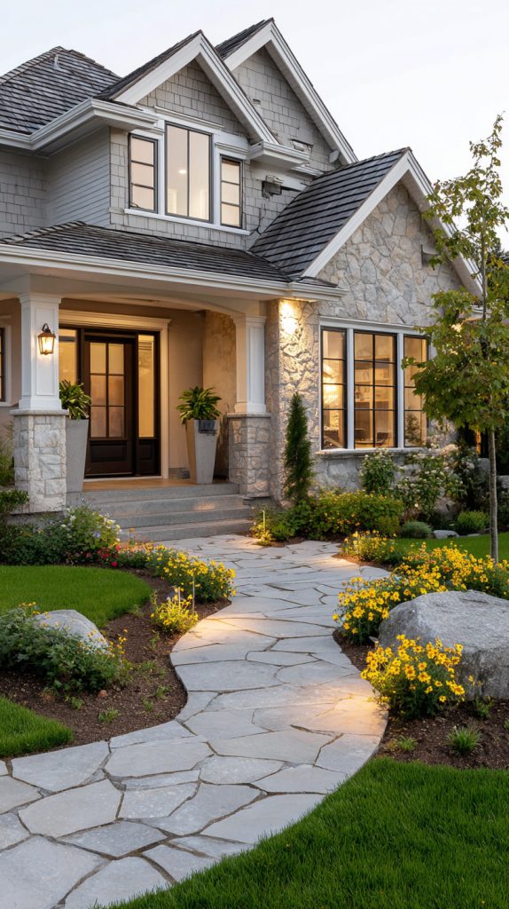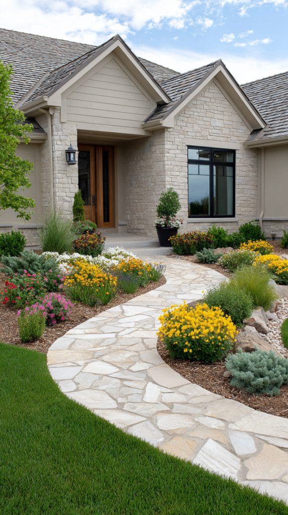 You can make your front yard feel warm and inviting by adding a curved stone walkway. The gentle curves create a natural flow that guides visitors to your door.