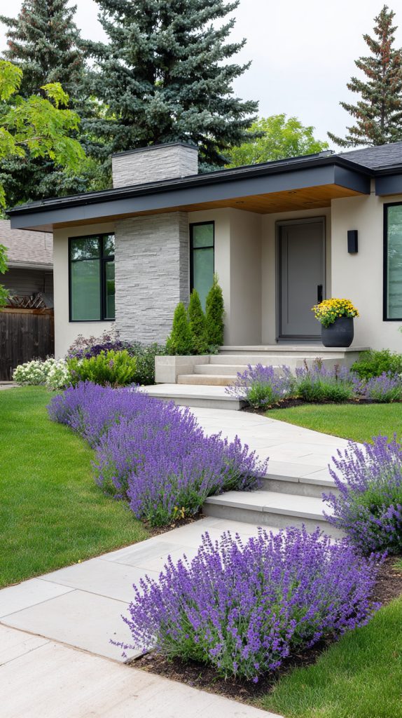 Plant lavender to add both lovely color and a fresh scent to your front yard. Its soft purple flowers brighten up spaces and attract bees and butterflies.