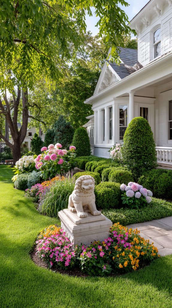 Adding a garden statue or sculpture can give your front yard a unique touch. Choose a piece that fits your style and blends well with your plants.