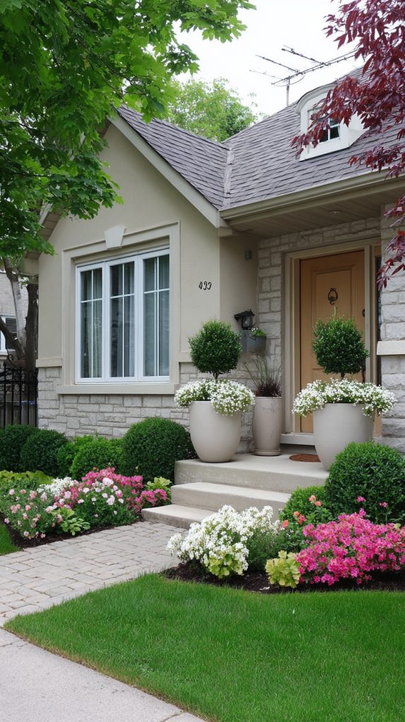 You can create a balanced and inviting front yard by designing a symmetrical garden. Use matching plants or flower beds on each side of a central path or feature. This gives your space a neat, classic feel that many people find appealing. Symmetry works well with both traditional and modern homes, helping your yard look organized and welcoming.