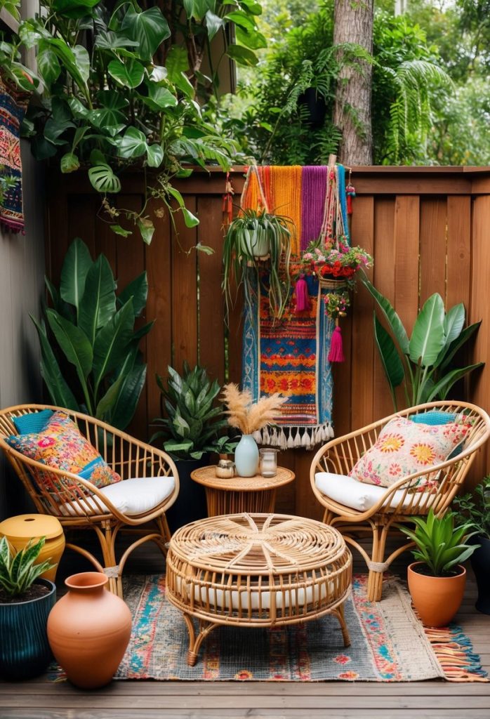 Woven styles or natural materials bring a bit of boho charm to your outdoor space.