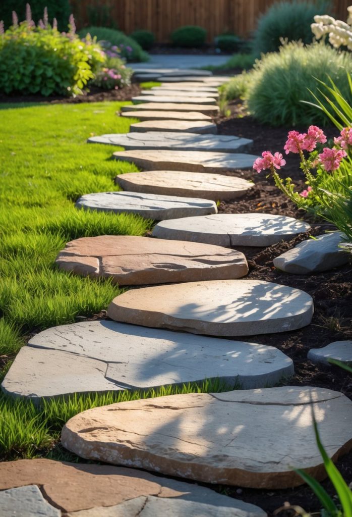 You can use flat natural stones to create simple, budget-friendly steps. These stones blend well with your garden and give a natural look. They are easy to install and durable, making them a great choice for any outdoor path.