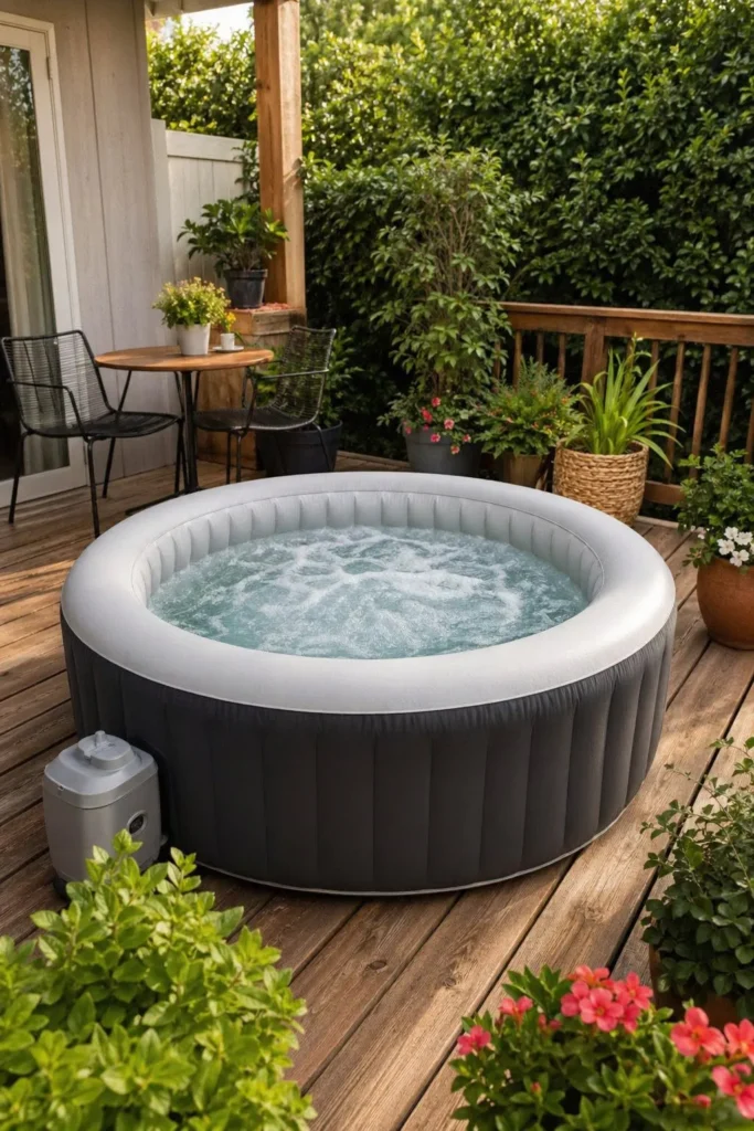 • 1. Simple Inflatable Hot Tub Setup on a Patio