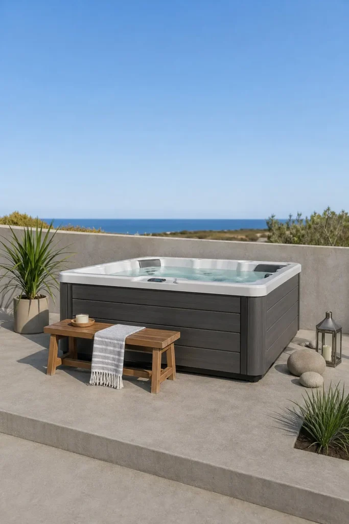 • 14. Minimalist Hot Tub Setup on a Concrete Slab