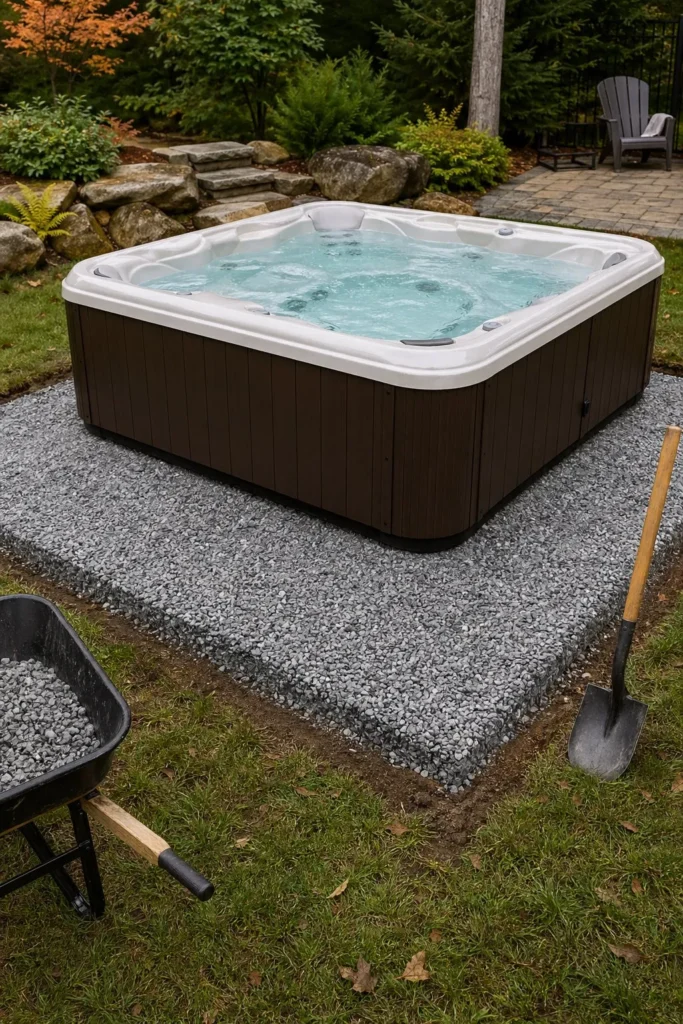 2. DIY Hot Tub Base Using Crushed Gravel