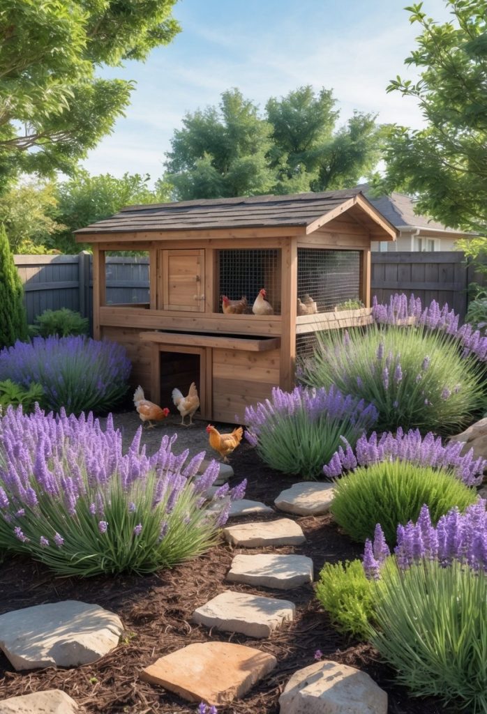These plants also help block wind and reduce noise. They make your coop area look nice without much work.