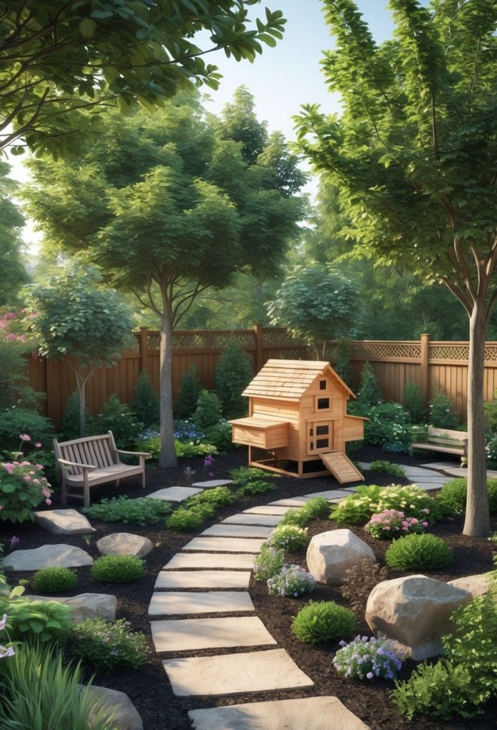 You can make a simple path using stepping stones that lead to your chicken coop. This helps keep mud off your shoes and adds charm to your yard. A winding path also makes the walk more interesting for you and your visitors.