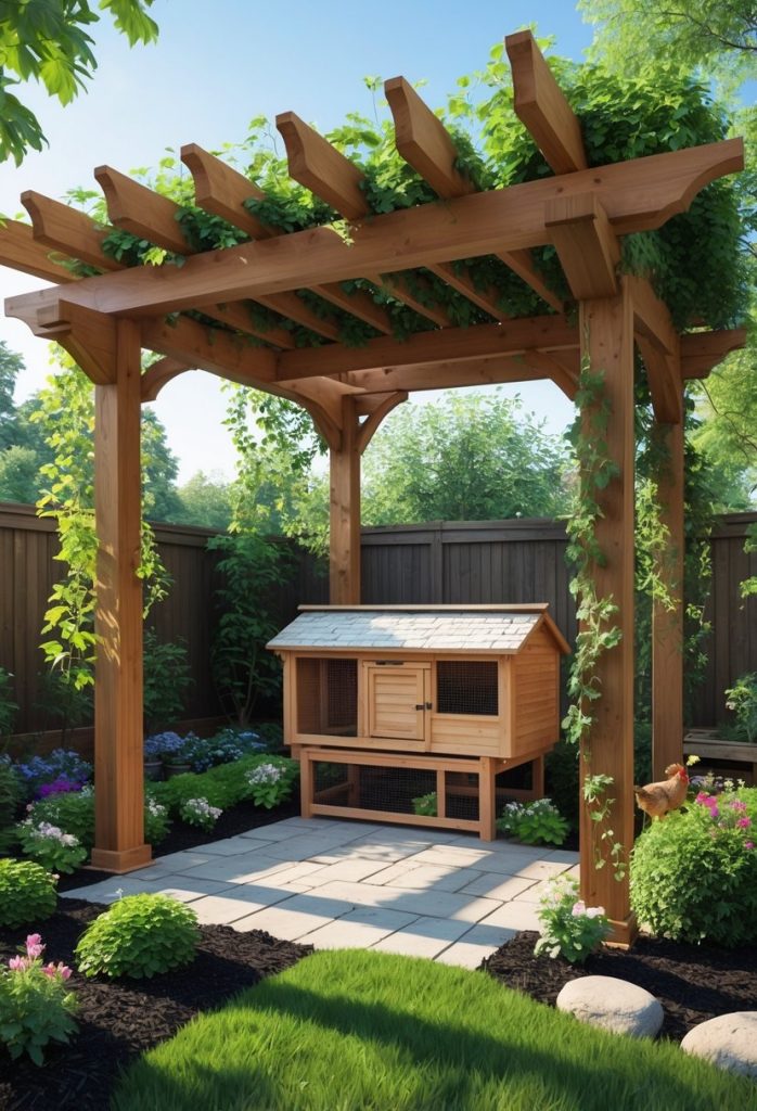 You can add shade and a natural look by building a pergola over your chicken run. Use climbing plants like beans or vines to cover it. This helps keep your chickens cooler while making the area more attractive.