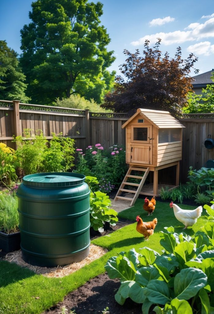 You can collect rainwater in a barrel to water plants around your chicken coop. This saves you time from carrying water and helps conserve water.