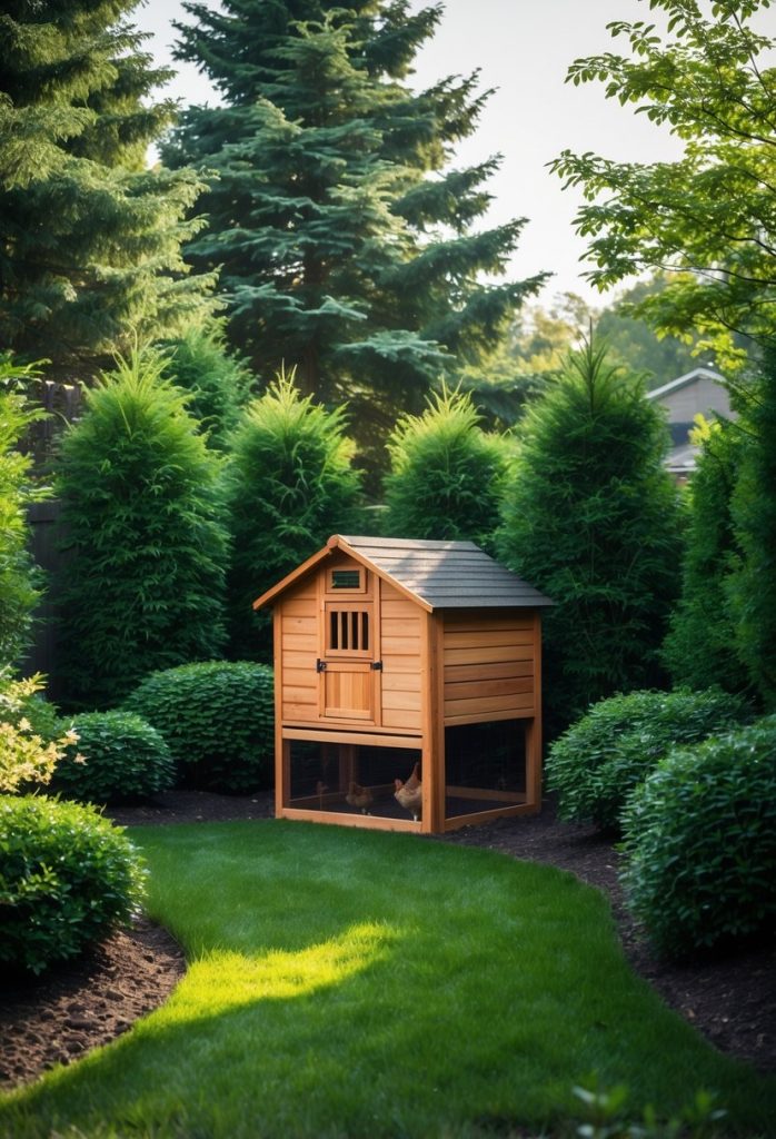 You can plant broadleaf evergreens like boxwood or rhododendrons around your coop. They keep a green screen all year, giving your chickens privacy and shelter.
