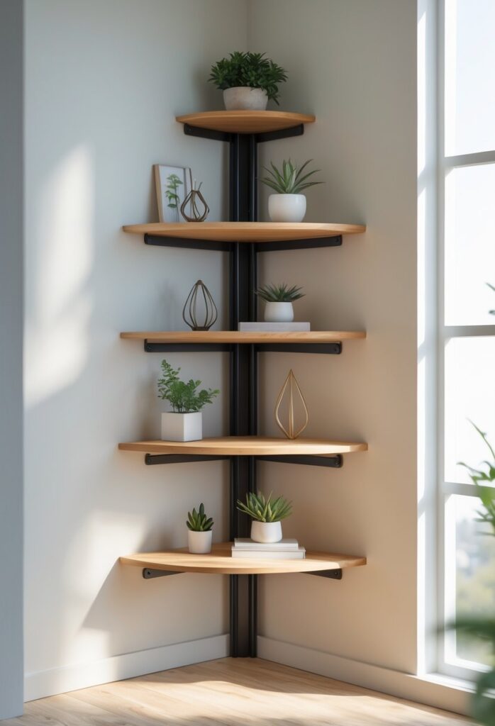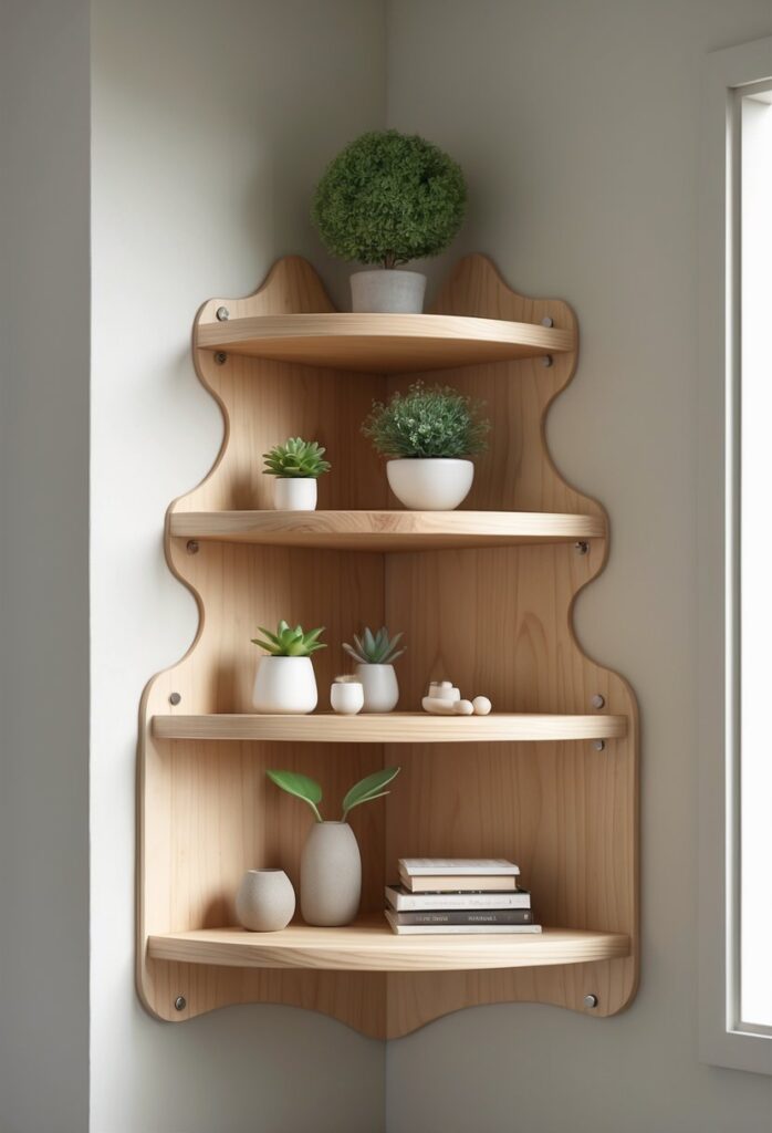 These shelves work great with simple decor like small plants or antique books. They give your space a soft, inviting feel while saving room in tight corners.