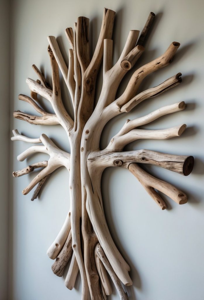 Driftwood tree art is simple to make. You only need driftwood, glue, and a little patience. It brings nature into your home in a creative way.