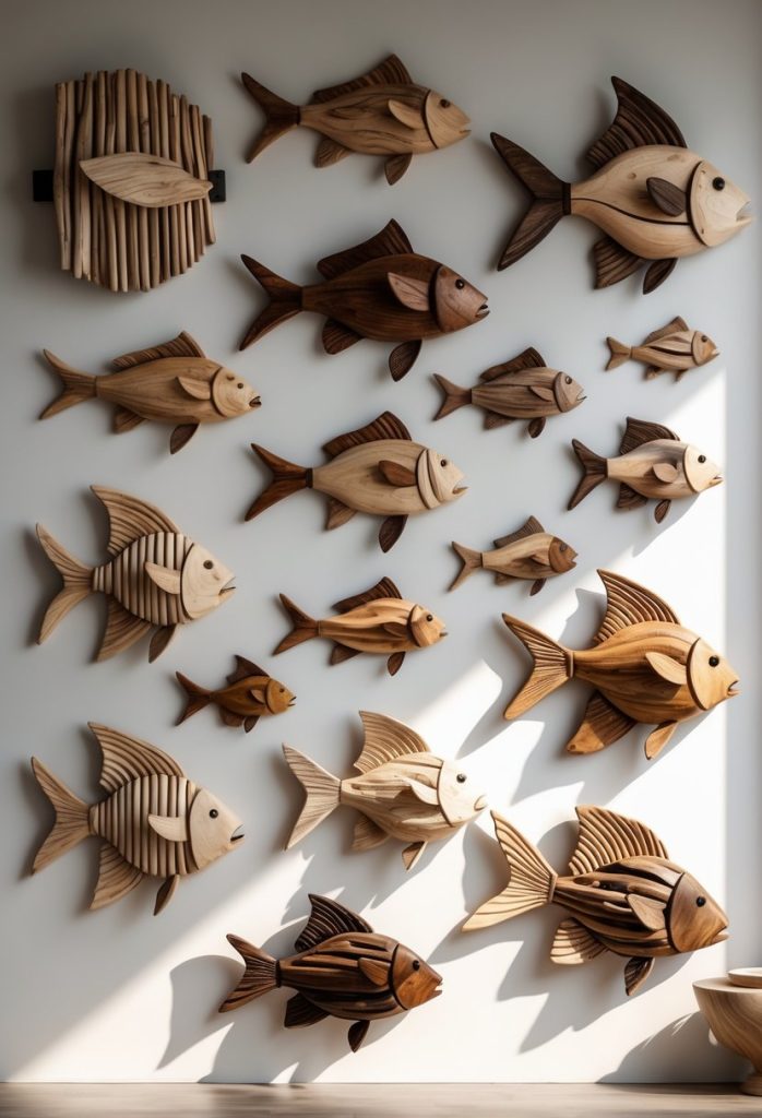 They are easy to make or find in stores if you prefer ready-made art. Driftwood fish bring a natural, relaxed vibe to your home.