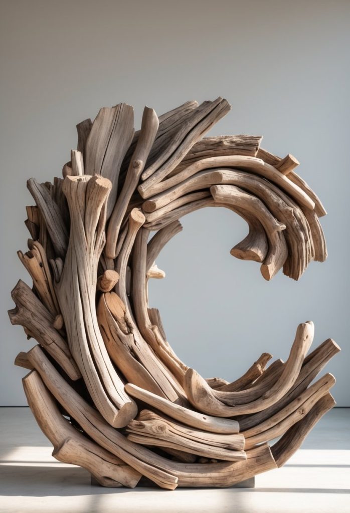 You can use driftwood to create wave sculptures that bring a natural flow to any space. These pieces often mimic the movement of the sea.