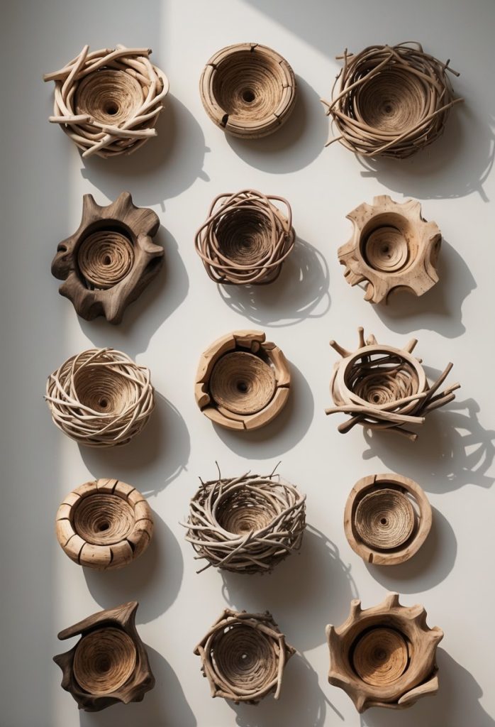 You can create driftwood nest sculptures by arranging small, twisting pieces of wood into round, nest-like shapes. These sculptures bring a soft, natural feel to your space.