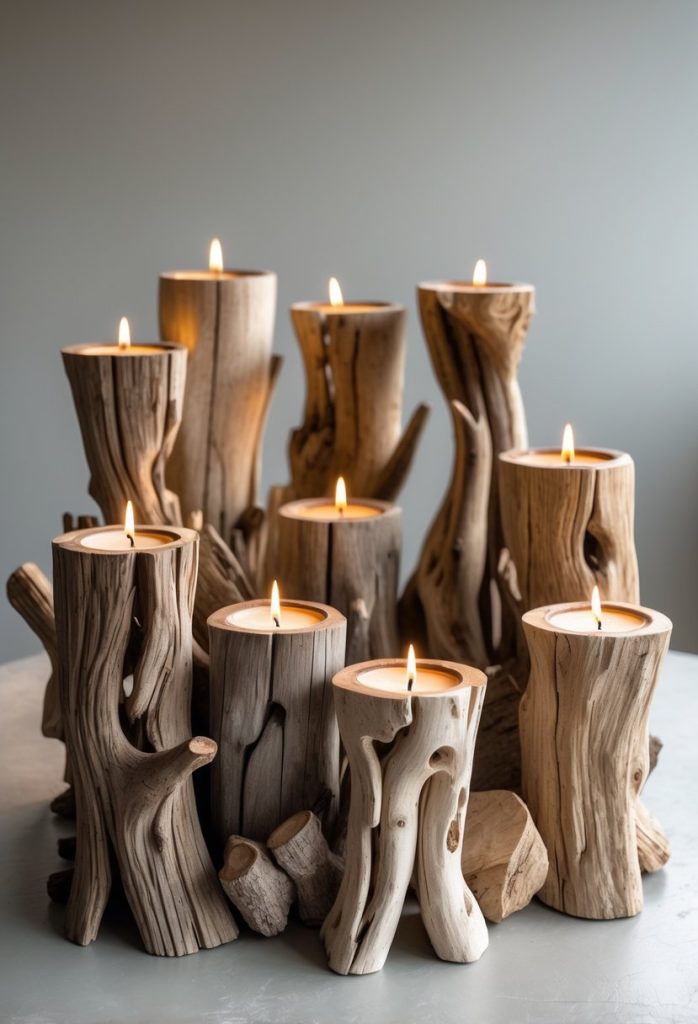 Using driftwood’s shapes, you can create unique holders that fit candles of all sizes. These pieces make great gifts or cozy decor for your home.