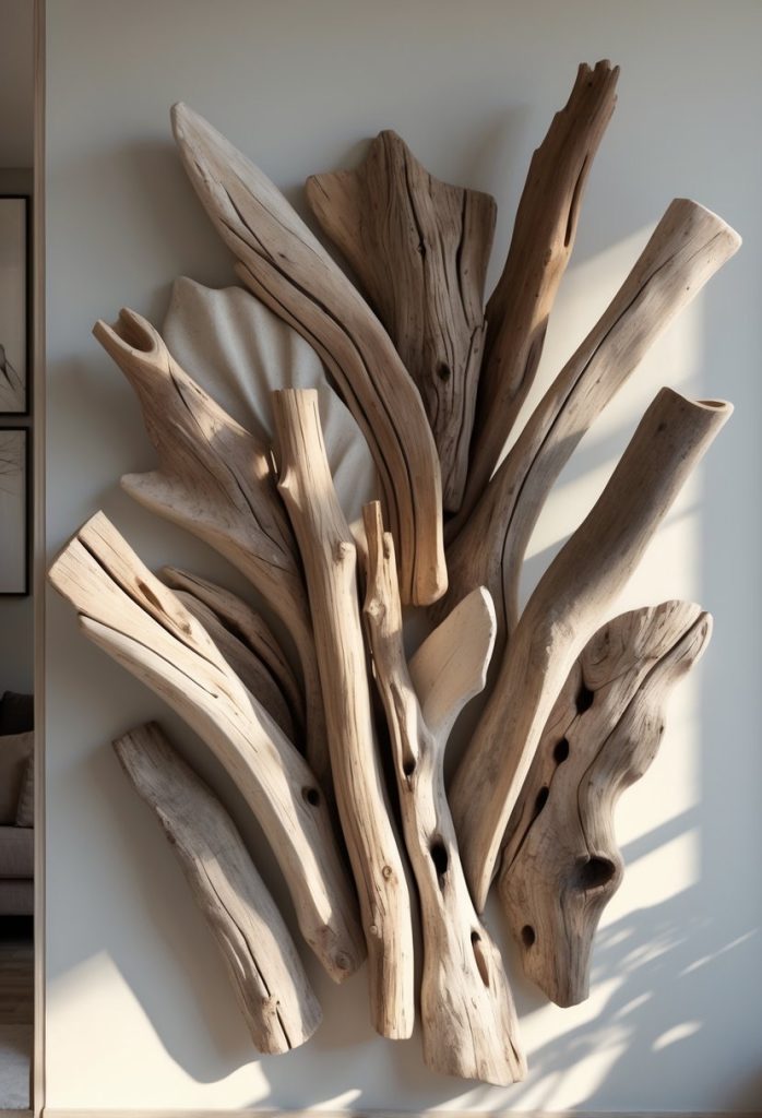 These clusters are great for adding texture and interest to your walls. They offer a fresh way to display driftwood beyond simple shapes or frames.