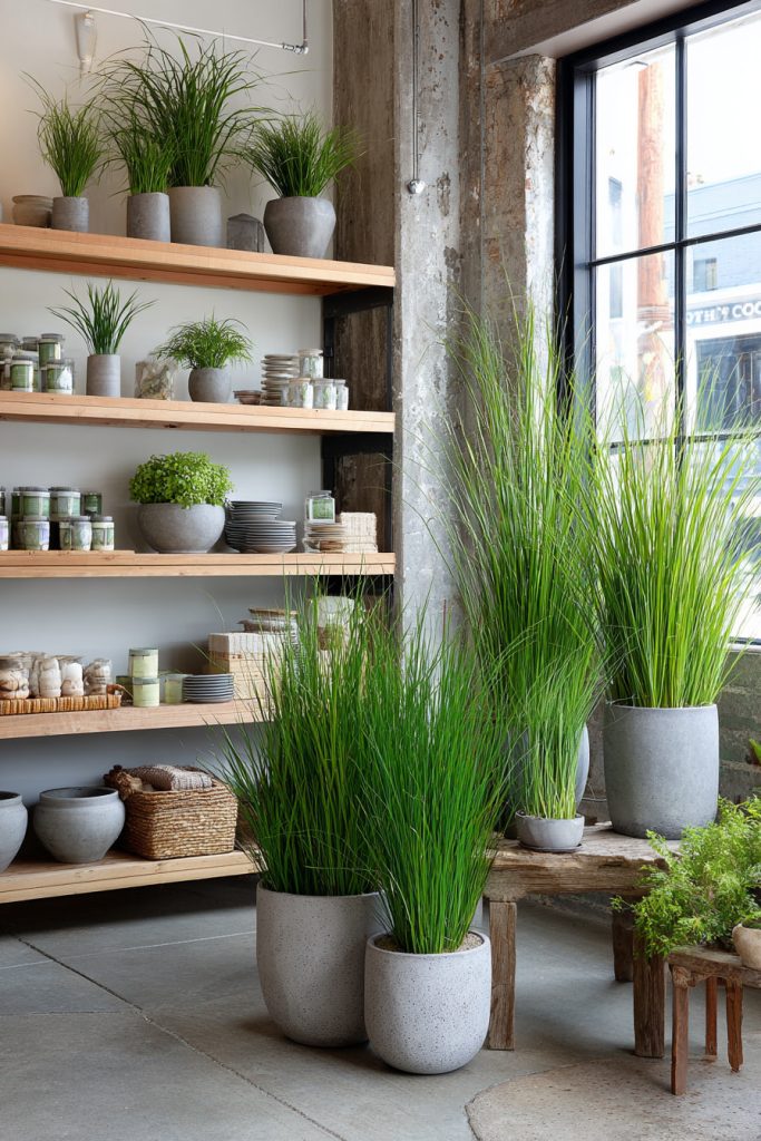 You can use slim pots to grow ornamental grasses even in tight indoor spaces. These grasses add gentle movement and texture without taking up much room.