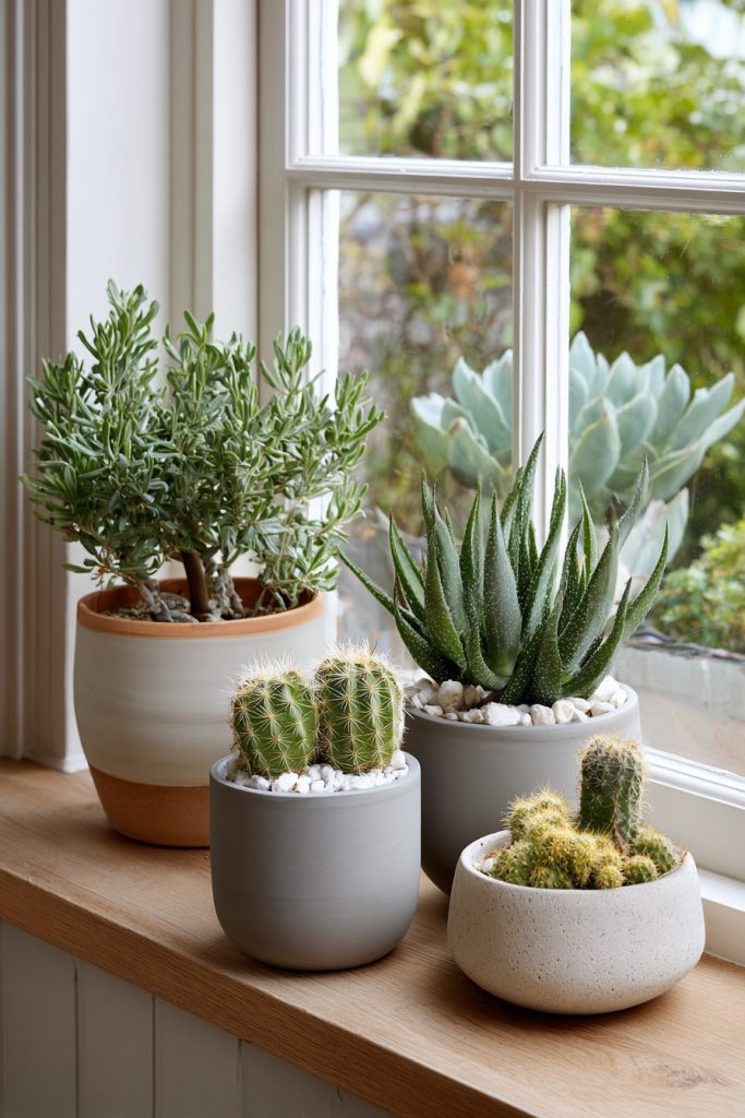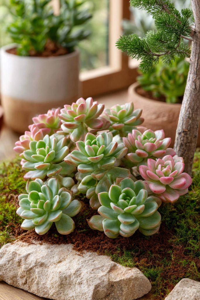 Place them in small pots or a shallow dish garden to create a lovely, low-maintenance display. Their unique shapes add charm without taking up much space.
