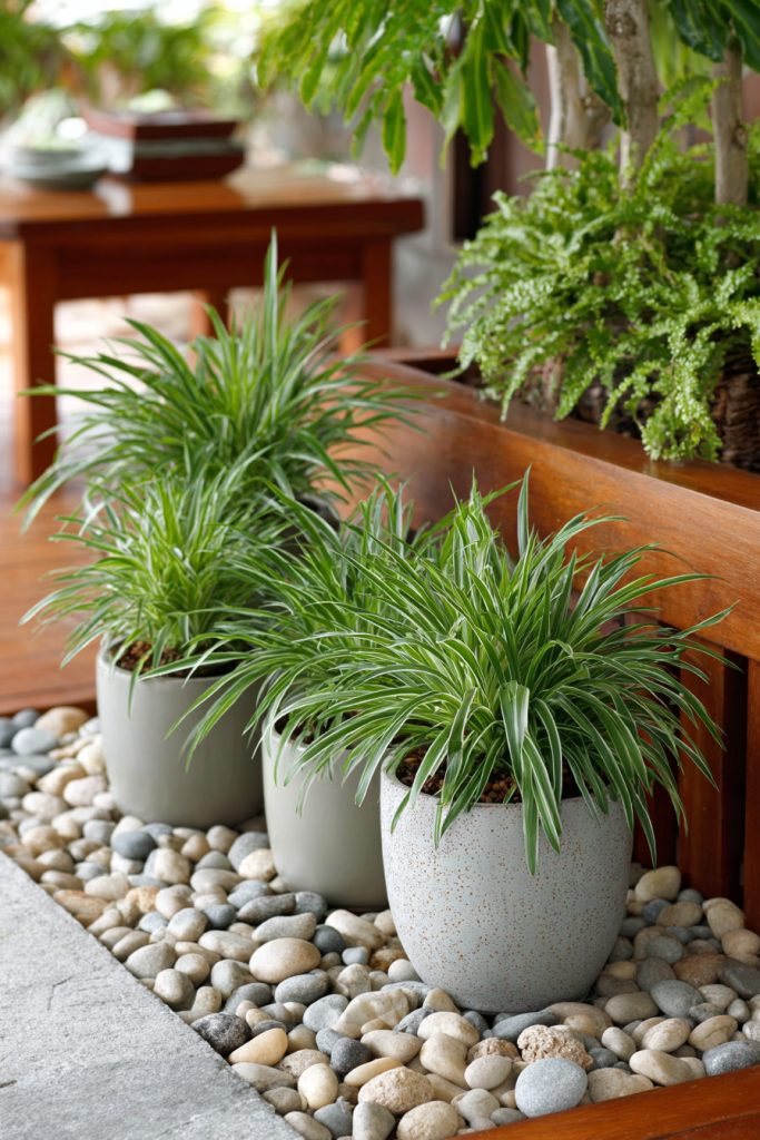 This creates a good environment for your spider plants to stay healthy and strong. Plus, pebble mulch helps stop weeds from growing near your plants.