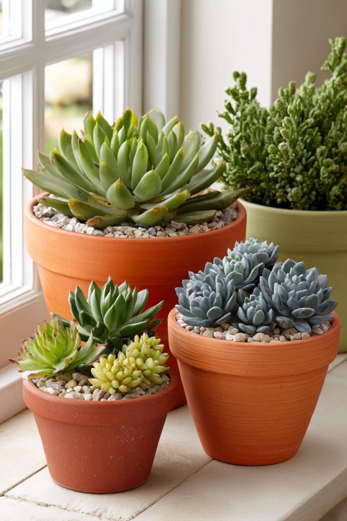 These succulents need less direct sunlight, so they fit well in shaded spots. Just remember to water them carefully to avoid overwatering.
