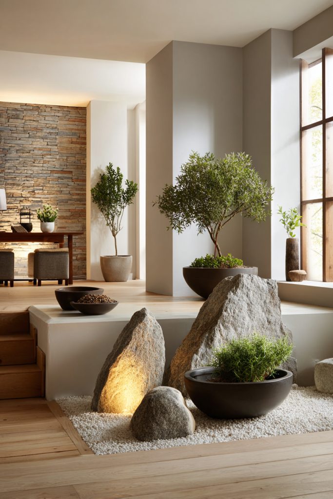 You can add LED accent lights to your indoor dry garden to highlight plants and stones. Soft lighting makes your space feel cozy, even when natural light is low.