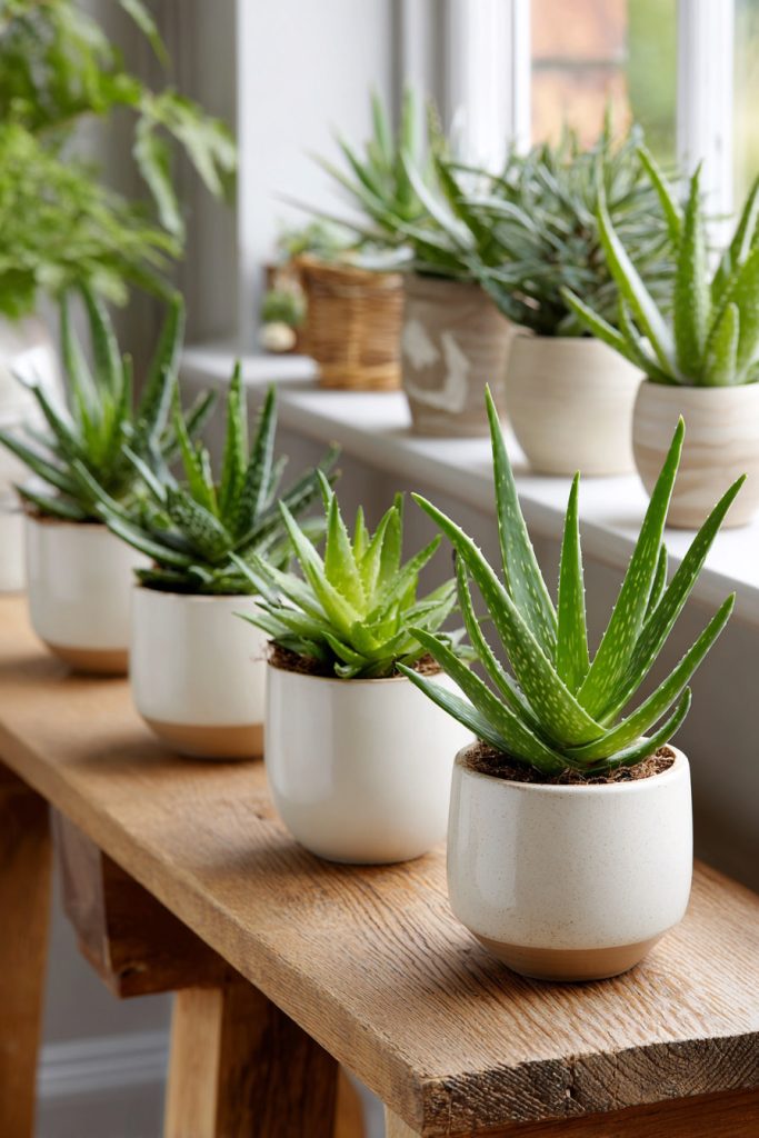 Aloe vera is low maintenance and fits well on shelves or windowsills. It also adds a bit of green without taking up much room.